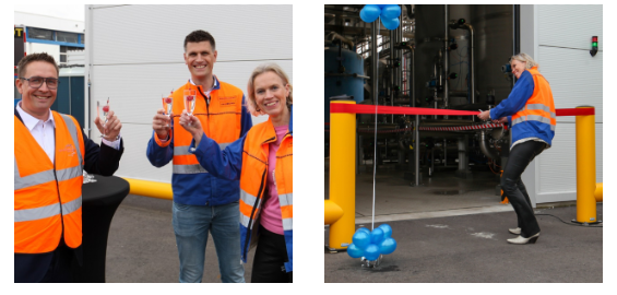 Vrumona celebrates its new state-of-the-art activated carbon water treatment system with an official ribbon cutting ceremony. Emil Bisseling, Envirogen Group, is joined by Vrumona’s Maarten Schaart, Operations Manager, and Managing Director, Evelien Sanders – de Boer.