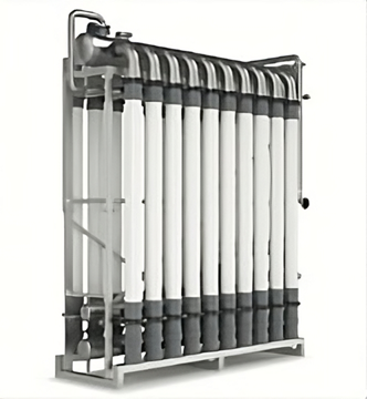 Vertically oriented Hydrophilic hollow-fiber membrane, 0.8 or 1.5mm bore size, 0.02 μm pore size. Modular systems with up to 12 modules per bank and 2 to 4 banks per system.
