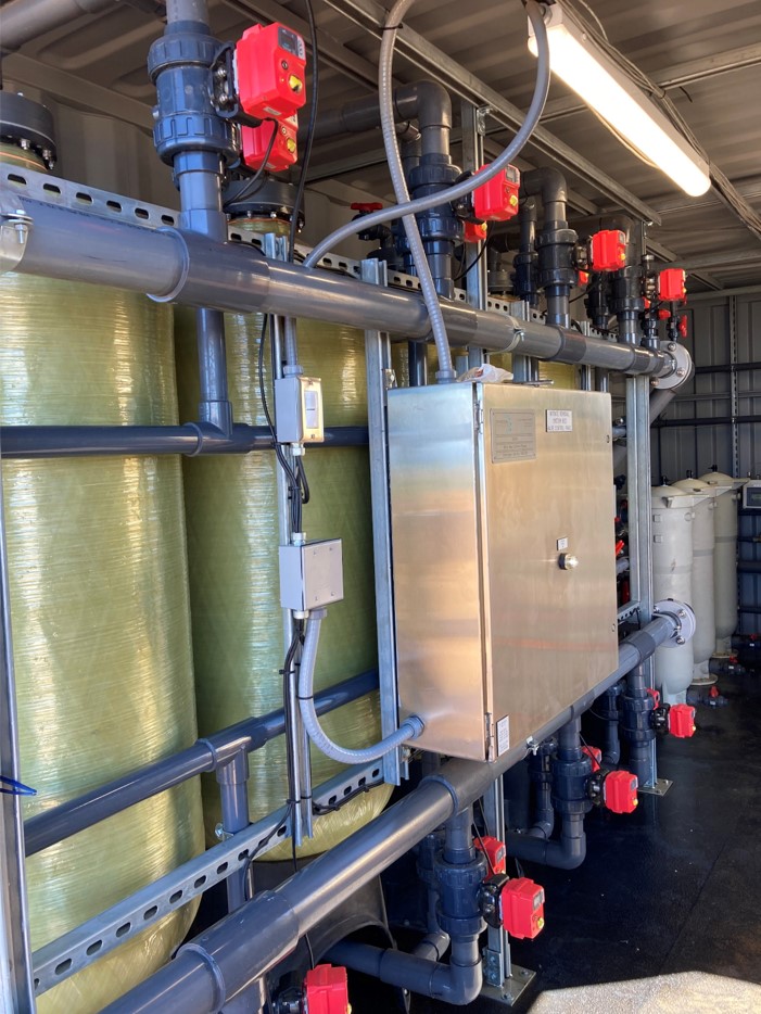 The ion exchange regeneration process is meticulously controlled and monitored using a Programmable Logic Controller (PLC), which leverages Envirogen’s SimPACK control logic to minimize waste and reduce salt/brine consumption.